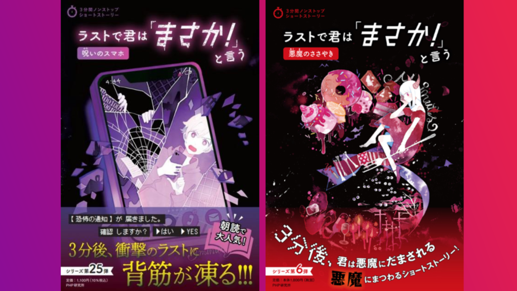 『ラストで君は「まさか!」と言う/呪いのスマホ』『ラストで君は「まさか!」と言う/悪魔のささやき』(PHP研究所)が重版となりました。3刷と5刷です。